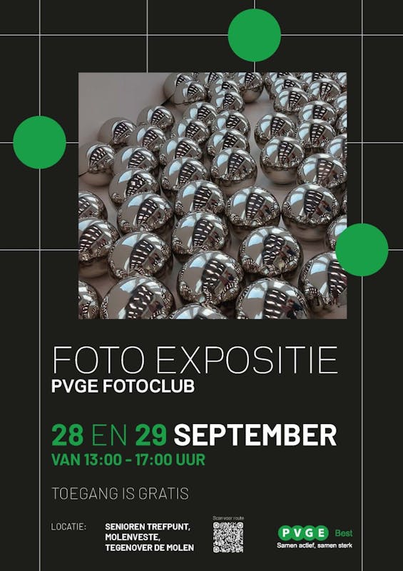 De al 16 jaren bestaande fotoclub van PVGE Best organiseert een bijzondere expositie van hun STER-foto’s; de beste foto’s die de 16 clubleden het afgelopen jaar hebben gemaakt. Daarbij wordt niet alleen op fotografische aspecten gelet, maar wordt ook gekeken naar de originaliteit van de weergave van de foto.
