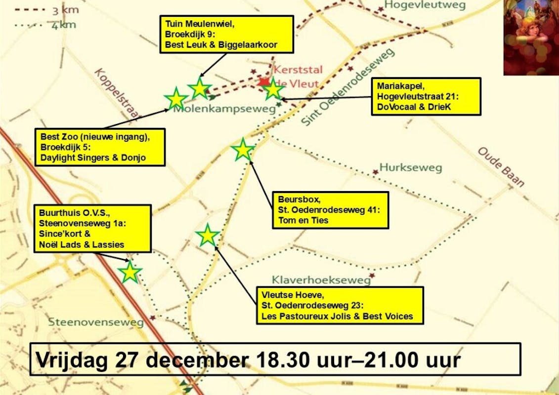 Alweer voor de derde keer dit jaar een gezellige Kerst-meezingavond in Buurtschap De Vleut. Op vrijdag 27 december zingen van 18:30 tot 21:00 uur maar liefst 11 koren uit de regio (kerst)liedjes op verschillende plekken langs de kerststallenroute. Het betreft gelegenheidskoren, grote en kleine koren, dameskoren, loopgroepen, a capella koren en koren die worden ondersteund met muziek. Veel afwisseling dus, en voor ieder wat wils.