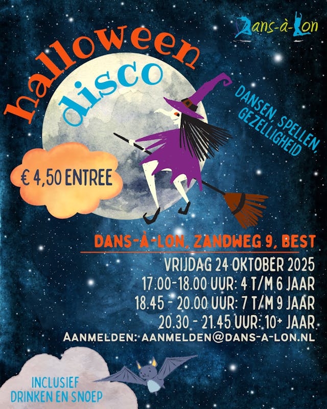 Op vrijdag 24 oktober is het weer tijd om te griezelen, dansen en spelen tijdens onze Halloween Disco! Trek je engste outfit aan en beleef een avond vol gezelligheid, spelletjes en natuurlijk heel veel dans. 🎃✨