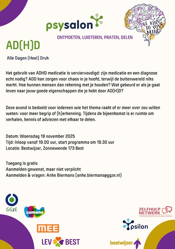 Bijeenkomst over AD(H)D op woensdag 19 november 2025
