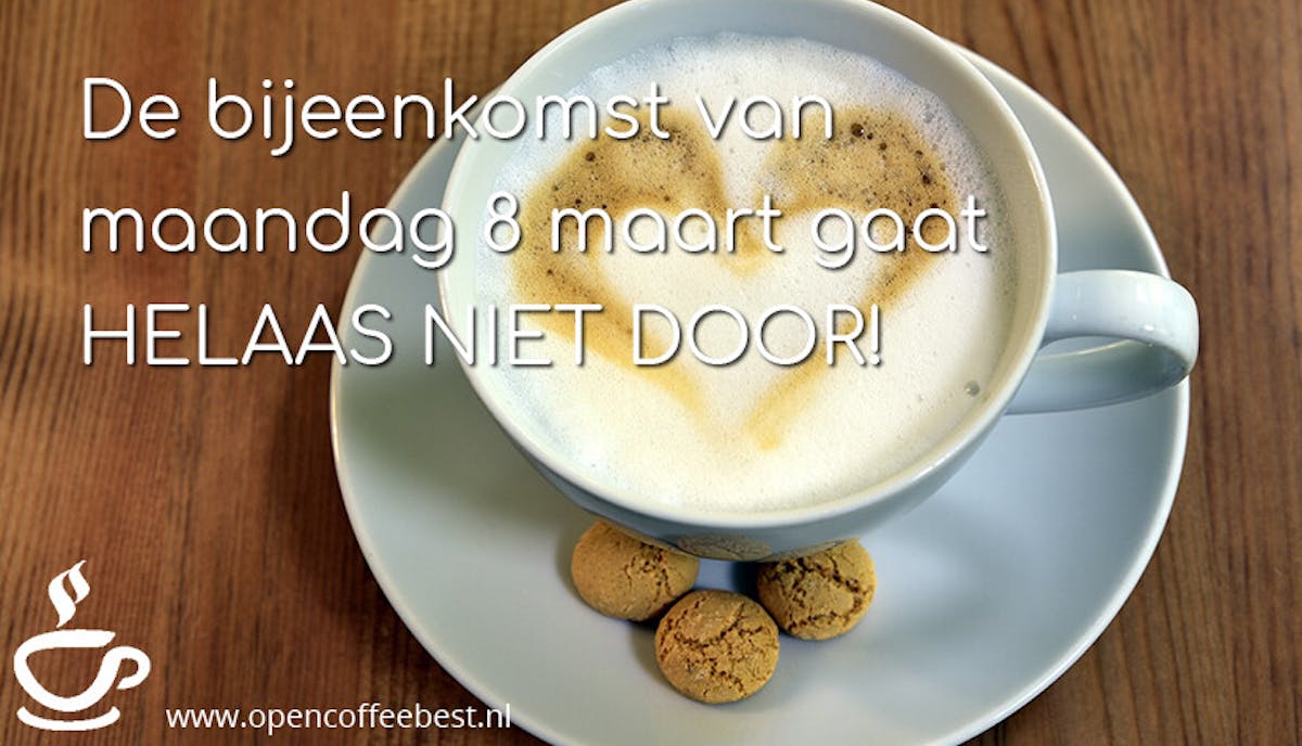 Vanwege de opnieuw verlengde lockdown en aanverwante maatregelen hebben wij moeten besluiten om de Open Coffee Best bijeenkomst van maandag 8 maart a.s. NIET door te laten gaan 😢