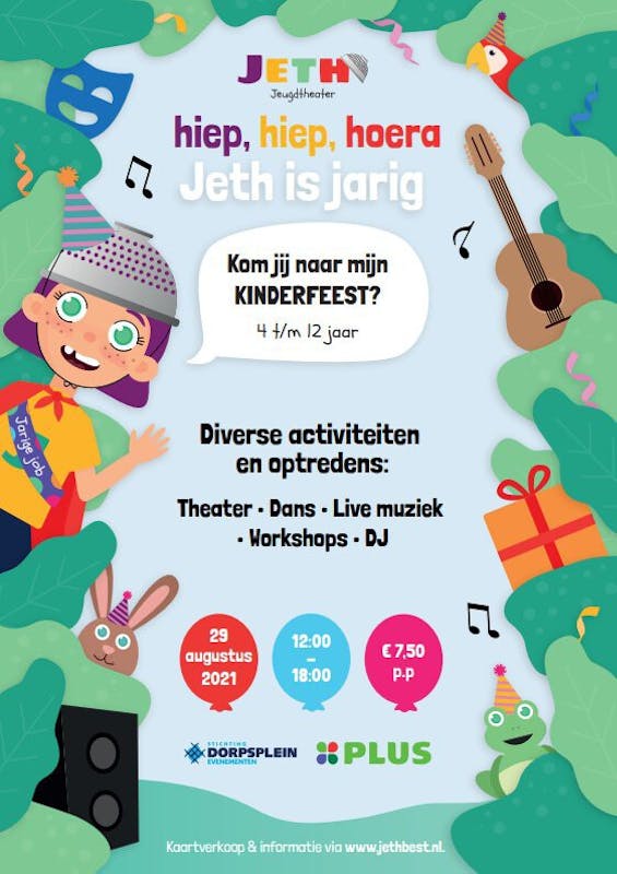 Jeth viert haar verjaardag met allerlei leuke activiteiten. Kom jij ook op haar feestje? Hou voor het verjaardagsprogramma haar socials en de website in de gaten! Kaarten voor dit minifestival kosten 7,50 euro.