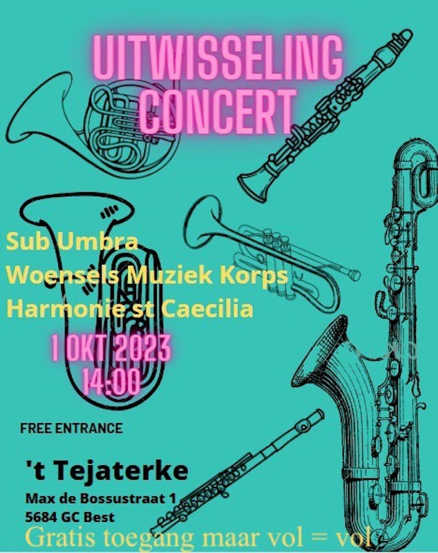 De opleidingsorkesten van Harmonie Sub Umbra uit Veldhoven, het Woensels Muziek Corps en Harmonie St Caecilia (Het Klein Orkest) verzorgen samen een uitwisselingsconcert. Nadat de drie orkesten 's morgens in 't Tejaterke hebben gerepeteerd verzorgen zij samen om 14:00 uur een concert met een zeer gevarieerd programma.