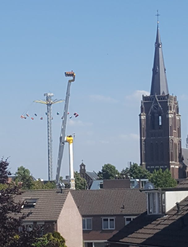 We gaan weer 5 dagen aan de zwier. Wat zouden onze grootouders hun ogen uitkijken naar al die grote attracties. Voor hun was de grootste sensatie om met je meisje je krachten te laten zien en daarbij je schuitje zo hoog te gaan dat je met de punt het tentdoek aanraakte. En nu kun je bijna vanuit de attractie bij onze Odulphus de vlag in het torentje steken.