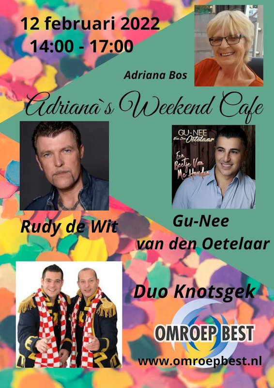 Adriana heeft iedere zaterdagmiddag van 14.00 tot 17.00 uur diverse gasten, deze week....