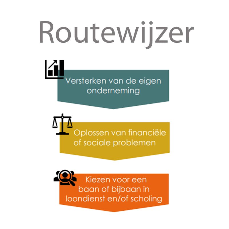De gemeente Best vindt het belangrijk om u als ondernemer zo goed mogelijk te ondersteunen in deze moeilijke tijd. Daarom hebben wij een routewijzer opgesteld. Hierin kunt u makkelijk de weg vinden naar de ondersteuning die past bij uw vraag. Bijvoorbeeld in het kader van het versterken van uw onderneming, het oplossen van financiële of sociale problemen of uw heroriëntatie op de arbeidsmarkt. U kunt de routewijzer online raadplegen. In de routewijzer kunt u doorklikken naar verschillende websites met meer informatie over dat onderwerp.