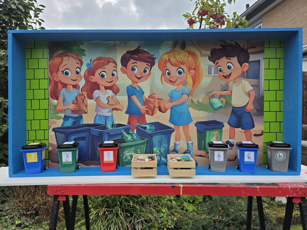 In het kader van duurzaamheid speelt ook het goed benutten van de afvalwijzer een belangrijke rol. Om kinderen op een speelse manier kennis te laten maken met afval scheiden heb ik een spel gemaakt wat daarbij een leuk hulpmiddel kan zijn. Bij mijn spel staan 6 minicontainers met de diverse afvalstromen er op vermeld en 2 minikratjes met dagelijkse boodschappen klaar. Aan de kinderen dan de taak om deze boodschappen na werkelijk gebruik in de juiste container te stoppen. Wilt U er bij een bepaalde actie, of bv. op een school, gebruik van maken, neem dan contact met mij op door een mail te sturen naar