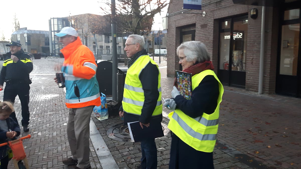 Leden Bewonersoverleg 't Centrum, Veilig Verkeer Ned, afd. Best aan het werk. Te snel rijdende chauffeurs,(brom)fietsers worden aangehouden en attent gemaakt op de toegestane snelheid.