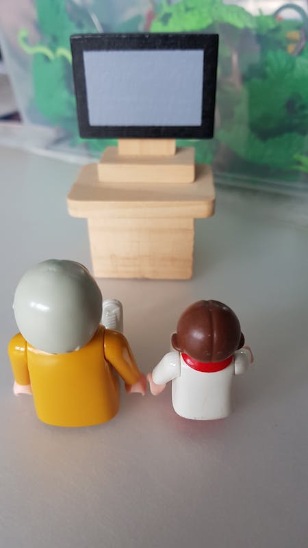 Tijdens één van de sessies werken we over herinneringen (m.b.v. de Sterrenkaartjes). In plaats van alleen de herinnering te bespreken laat ik de herinnering ook in beeld brengen (POPtalk). De herinnering wordt dan meer een beleving. Het doet Charlotte zichtbaar goed om op deze manier over opa te werken en te praten. Bij de vraag: wat mis je het meest van opa zegt ze: “samen tv kijken”. Ze keken altijd samen naar natuurprogramma’s. En opa maakte dan allerlei grapjes over de dieren waardoor Charlotte weer moest lachen. Ze hadden dan zoveel plezier samen.