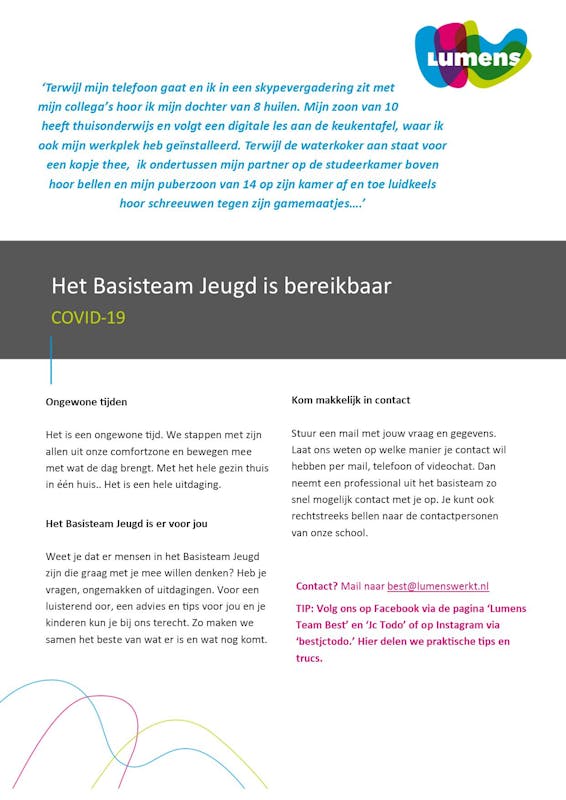 Ook in deze ongewone tijden blijft het Basisteam Jeugdpreventie in Best gewoon bereikbaar. We werken veel vanuit thuis maar wat we voor je kunnen betekenen hebben we op een rijtje gezet in de hierbij geplaatste flyer.