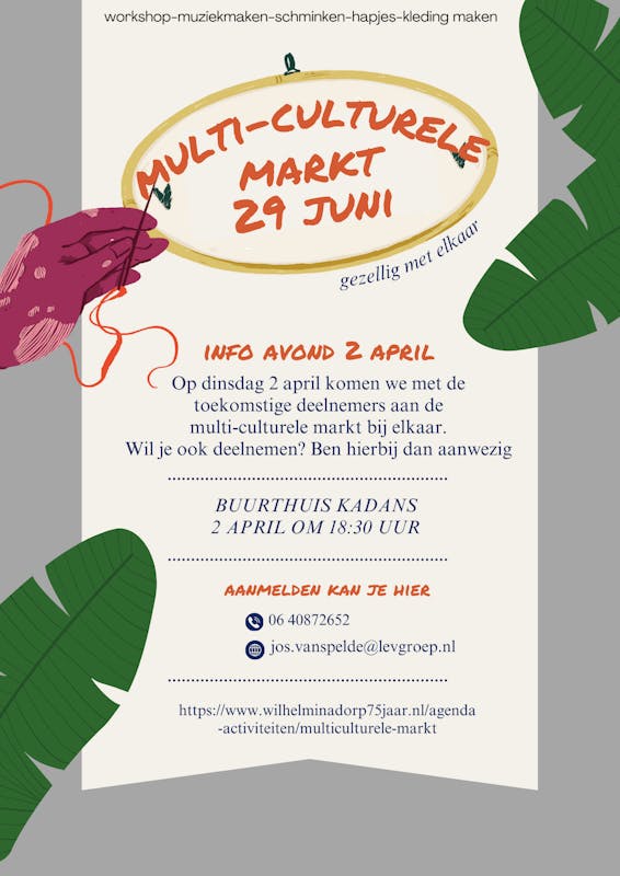 Wil je als bewoner van het Wilhelminadorp of inwoner van Best deelnemen met iets leuks of interessants op creatief, muzikaal of sociaal gebied?