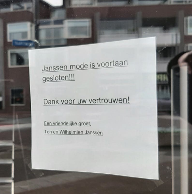 Ze hadden het enkele tijd geleden al aangekondigd, toch is het raar om langs een lege winkel te lopen. Vele jaren heb ik hier veel sportkleding en badkleding voor mijn kinderen gekocht.