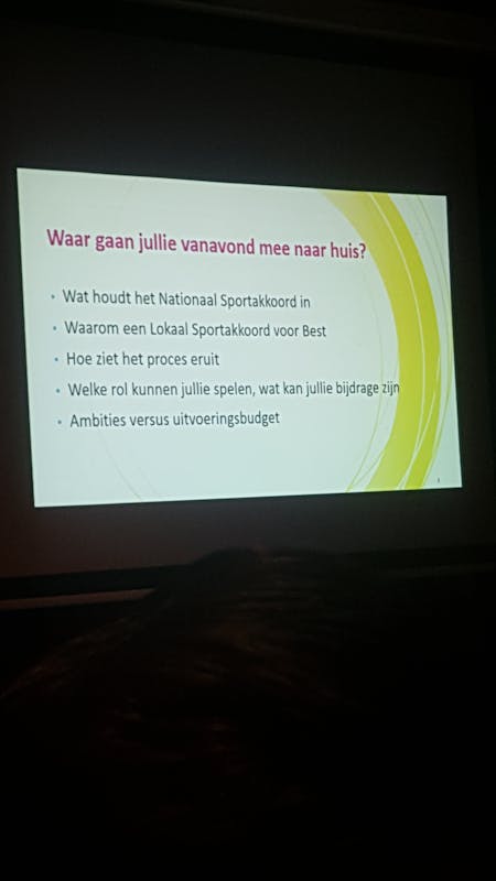 Namens PleinBest waren Ruud en ik vanavond aanwezig bij de bijeenkomst voor een sportakkoord voor de inwoners van Best op te stellen.