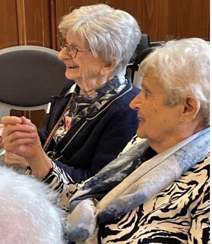 Het werd een gezellige boel, zeker toen alle gasten en vrijwilligers met de servetten gingen zwaaien. Het was voor alle aanwezigen echt genieten, zeker omdat we weer dicht bij elkaar mochten zijn. Nadat iedereen een frietje met kroket had gegeten, kwam er aan deze middag ook weer een eind.