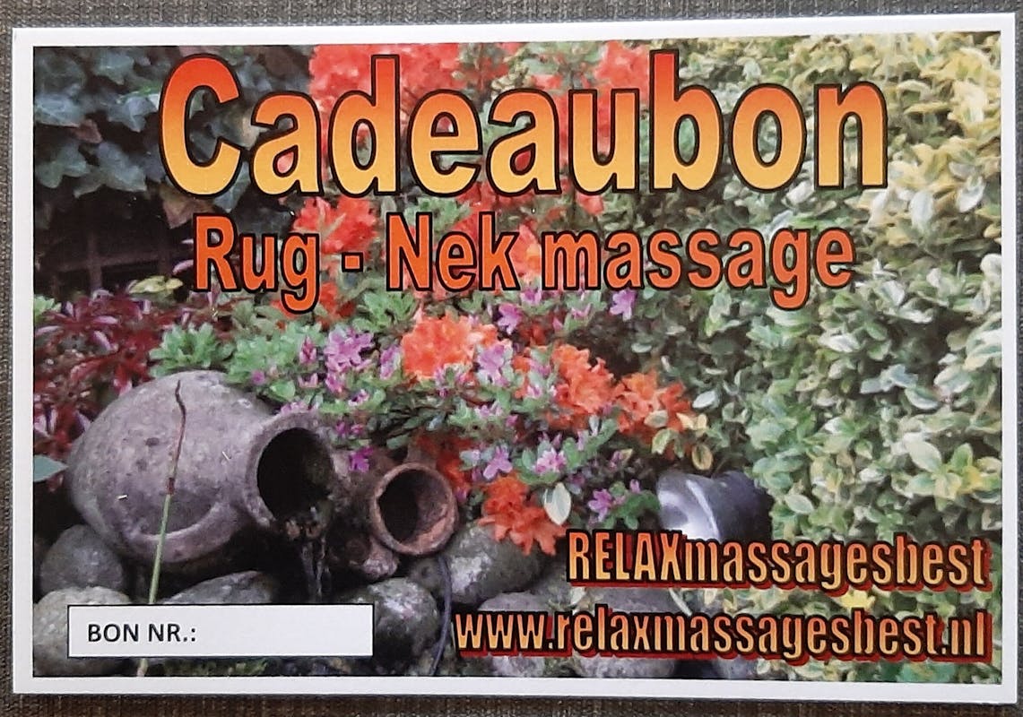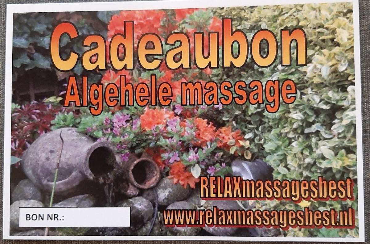 Een Cadeaubon voor een heerlijke ontspanningsmassage! Voor €30,00 kun je al heerlijk 45 minuten ontspannen. Bestellen kan simpel via de QR code foto 5 of https://www.relaxmassagesbest.nl