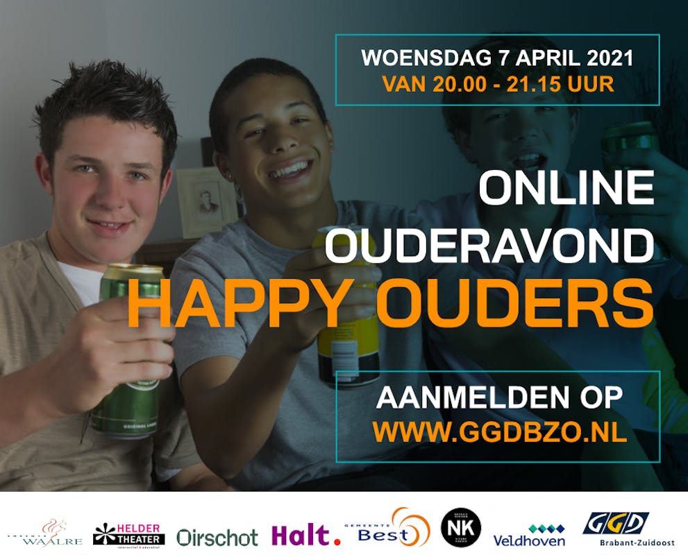 Ouders hebben grote invloed op het drinkgedrag van hun kind. Ook is het goed om als ouder te weten wat alcohol en andere genotmiddelen doen met jongeren, hoe jongeren hier mee omgaan en hoe de huidige uitgaanswereld van jongeren eruit ziet. Veel ouders worstelen met hun rol als opvoeder. Vraag jij je ook af hoe uitgaan er tegenwoordig aan toe gaat? Meld u dan aan voor de online ouderavond op Woensdag 7 april 2021 20.00 - 21.15 ‘Happy ouders’ via www.ggdbzo.nl.
