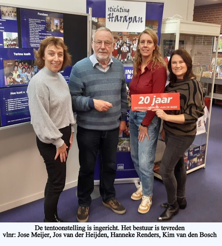 Maandag werd door het bestuur de overzichtstentoonstelling 20 jaar stichting Harapan, 20 jaar Ontwikkelingswerk aan de basis ingericht in Cultuurspoor Best. De tentoonstelling geeft een heel goed overzicht van de doelstelling, werkwijze en de diverse projecten die door Harapan gesteund worden.. U kunt de tentoonstelling bezoeken tijdens openingsuren van Cultuurspoor.