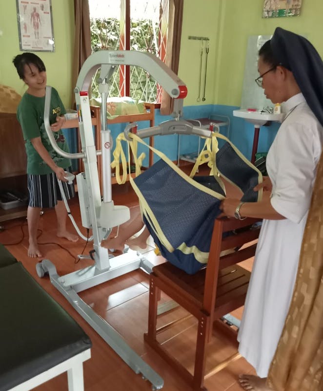 Geld voor revalidatiecentrum Caritas Dorkas op Nias/Sumatra. Steun aan dit centrum is een van de Harapan speerpunten. Hier worden kinderen opgenomen en behandeld die psychische en fysieke aandoeningen hebben. De gehandicapten in Indonesië, zo goed als mogelijk, te helpen een gelukkig leven op te bouwen, zelfstandig, als volwaardig onderdeel van de maatschappij is het doel van de zusters. Er is plaats voor +/- 40, voor het overgrote deel dubbel gehandicapte kinderen. Zij hebben intensieve zorg en begeleiding nodig. Door de gebrekkige hygiënische omstandigheden zijn er veel problemen bij de geboorte, vooral in de kampongs. Door zuurstofgebrek en hersenvliesontsteking komen hier veel houdings- en bewegingsstoornis voor. Dit treft de hele familie. De zusters in het centrum worden gevraagd om voor deze kinderen te zorgen en te helpen bij hun ontwikkeling. Daarbij is bijna nooit sprake van financiële bijdrage door de ouders. Soms brengen zij wat rijst of een kip mee als zij op bezoek komen. Vaak zijn de kinderen in slechte conditie als zij worden opgenomen. Dit komt vooral omdat de ouders geen medische verzorging kunnen betalen. Door fysiotherapie en oefentherapie worden ze steeds sterker en ook steeds zelfstandiger. Er werd een beroep gedaan op stichting Harapan om bij te dragen in de kosten van een noodzakelijke tillift en diverse apparatuur voor de fysiotherapie. De totale kosten € 5.145,-- Harapan vroeg de stichting Bisschop Bekkers bij te willen dragen, ze betaalden onlangs het volledige bedrag.