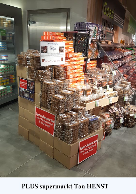 Donderdag werden de Plus supermarkten Kenter en Henst bevoorraad met onze actie-speculaas. Vanaf 5 november is het mogelijk om de pakken speculaas daar te kopen op een speciaal daarvoor ingerichte plek . De verkoop loopt via de kassa, na afloop van de actieperiode krijgt Harapan de volledige omzet uitbetaald. De opbrengst wordt bestemd voor kindertehuizen / gehandicapten op Flores.
