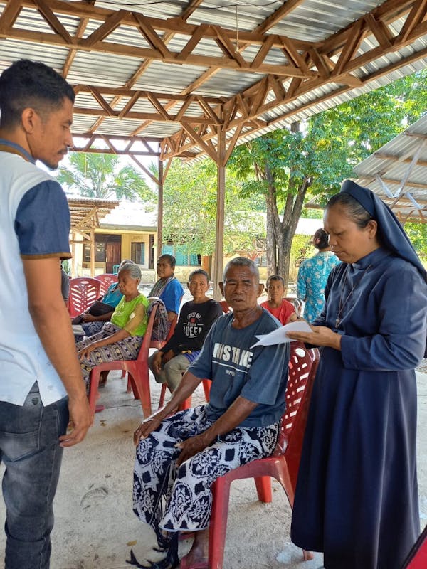 Van de zusters op West-Timor ontvingen wij onlangs bijgaande foto's over de voortgang van het project. Er wordt onderzocht of een operatie in het ziekenhuis nodig is of dat op een andere manier het oogprobleem kan worden opgelost.