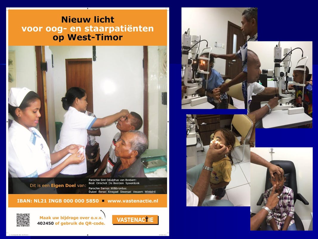 De opbrengst van de Vastenactie in de parochies samen Willibrordus en Odulphus van Brabant (de dorpen Eersel-Steensel-Duizel-Vessem-Wintelre-Knegsel-Oirschot-Best-de Beerzen-Spoordonk) wordt dit jaar bestemd voor het door ons geinitieerde project ; NIEUW LICHT, oog- en staaroperaties op West-Timor. De opbrengst is nog niet helemaal bekend maar er wordt een goede opbrengst verwacht dankzij de inzet van de organisaties GOEDE DOELEN WEEK in genoemde dorpen. Nader bericht hierover volgt.