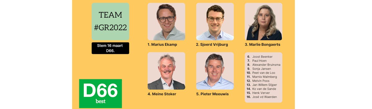 D66 Best is een progressieve lokale politieke partij, vertegenwoordigd in de gemeenteraad van Best.