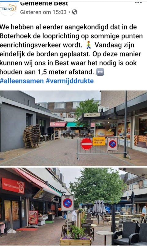 Mededeling op Facebook pagina van de Gemeente over de ingestelde oprichting. Helaas ziet het er zo niet echt vriendelijk eruit, maar het is wel heel duidelijk. We hebben het er toch alles voor over dat onze Horeca zo snel mogelijk hun omzet terug kunnen verdienen en het vol kunnen houden.