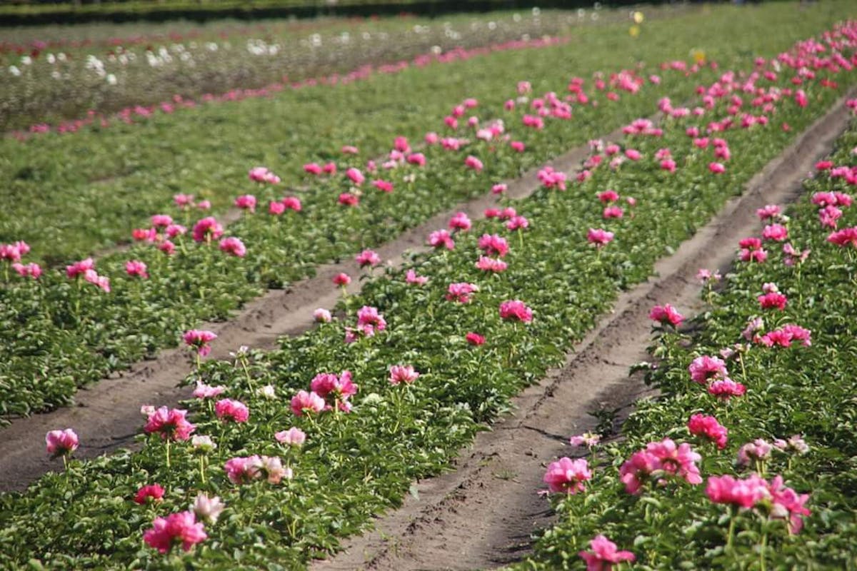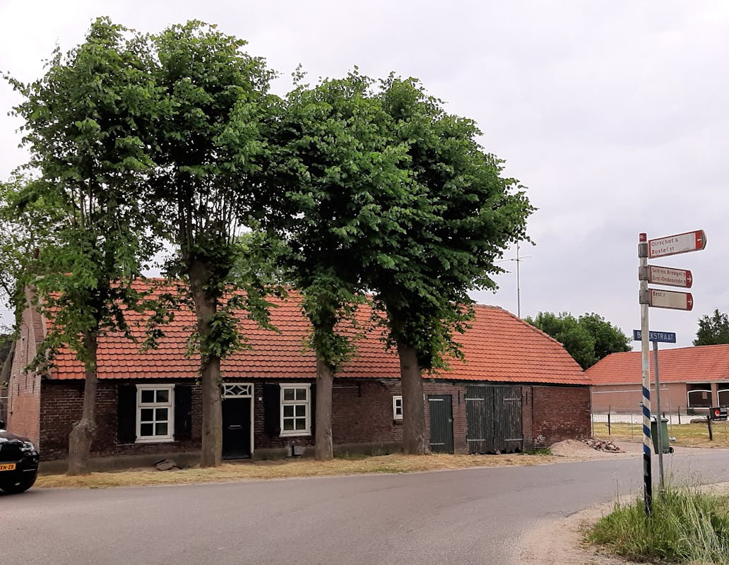 Helemaal op de hoek bij de Mosslaarseweg staat links het mooi pionrozenveld met daar helemaal recht in de hoek wat vroeger de onbewaakte overweg was, staat een heel oud laag huisje. Er hebben lang hekken omheen gestaan en het was gestut omdat het dreigde in te storten. Het blijkt een momumentaalpand te zijn, omdat de nieuwe eigenaren hogere plafonds wilde en niet omhoog mochten bouwen, hebben ze de vloer verlaagt. Het gevolg was minder, het huisje werd onstabiel en dreigde het in te storten. Nu zag ik dat de hekken weg waren en er stond een auto van een bouwbedrijf bij. Zal het toch nog goed komen met dit markante huisje.