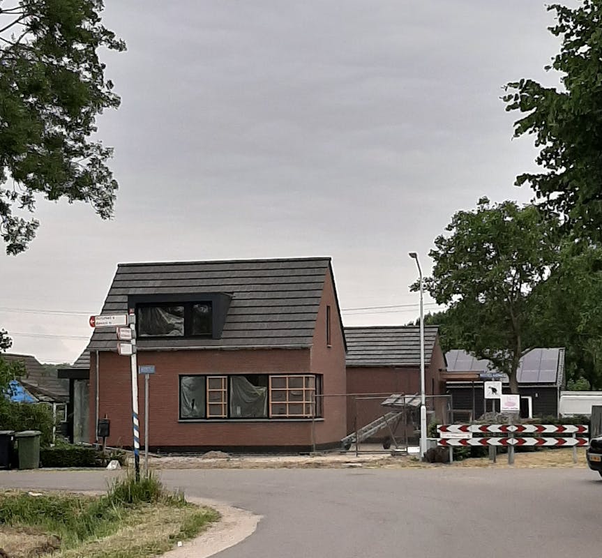 Het nieuwe woonhuis op de hoek aan de Mosselaarseweg, daar schuin tegen over schiet ook al aardig op.